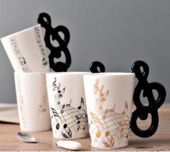 Ceramic mug “music” in white-black-brown colors