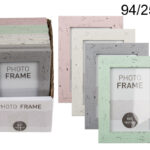 Pastel coloured plastic photo frame in wooden, optic, 10 x 15 cm, 4 colours ass., 12 pcs (5x white, 3x grey, 2x rose, 2 x mint) per display