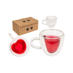 Double-walled thermo-glass with heart shape, 9 x 8,3 cm, 180 ml, set of 2 pcs in craft paper box