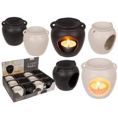 Oil burner, vase, ca. 9 x 8,5 x 8 cm, 2 colors assorted, 12 pcs per display