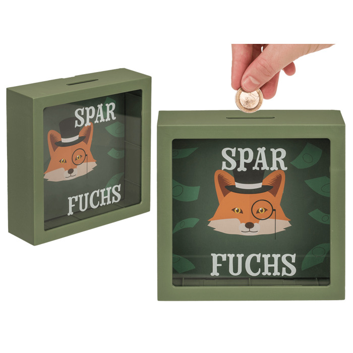 Plastic saving bank, ca. 15 cm