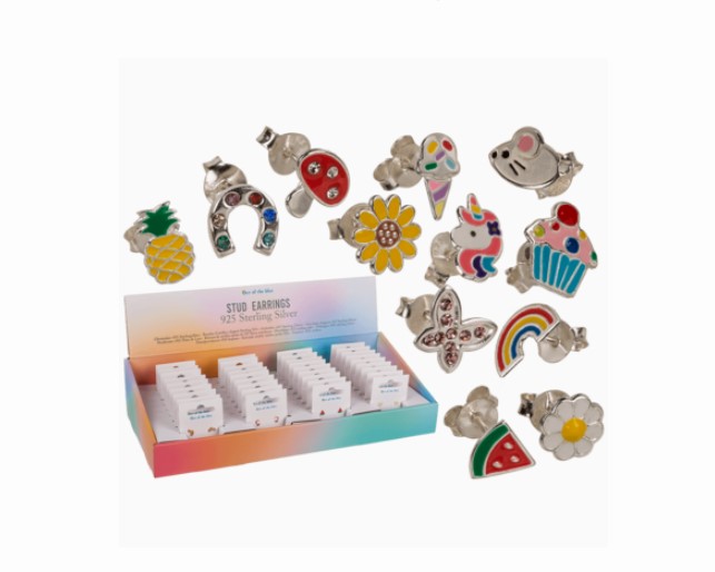 Stud Earrings, Kids collection, 12 assorted, made of 925 sterling silver, 36 pcs per display box